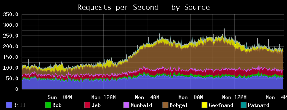 This is a graph of the number of hits to some service — see how busy it is and how the load breaks down among different sources